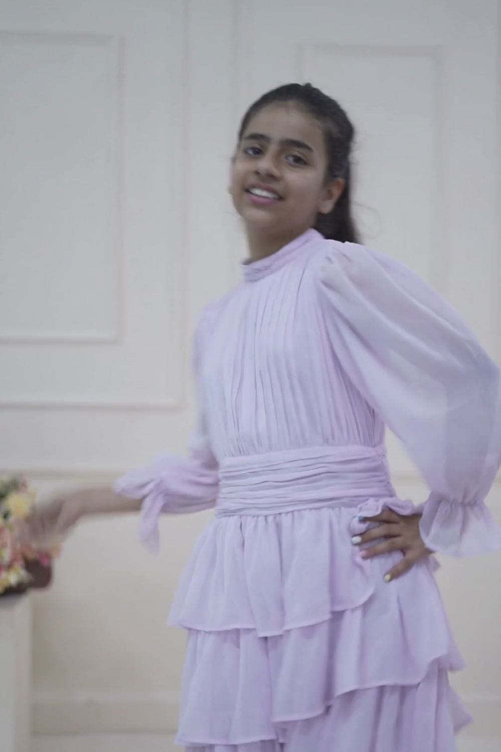 Make a summer statement in our Sweet Violet Girls Flared Dress. The flared skirt and pleated waist give the perfect fit and flared silhouette. Asymmetric flares, puff sleeves and beautiful details is all a princess needs. The fabric is light on skin and super breathable.