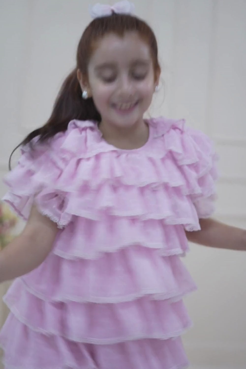 Designed with ruffled layered on a pretty pink hue, our Wild Rose Ruffle Dress is our favorite party pick this season. The dress features layers and layers of ruffles and intricate lace details throughout.