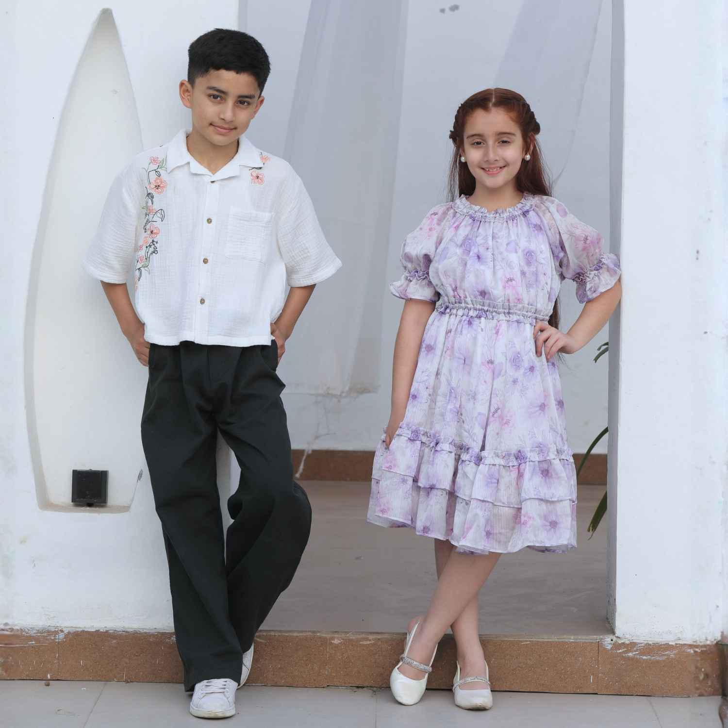 Luxe & Hardy offers womenswear and kidswear including evening gowns for women, elegant dresses, co-ord sets, floral summer dresses, girls flared and chiffon dresses, partywear dresses for kids, and boys shirts, pants, and co-ord sets.