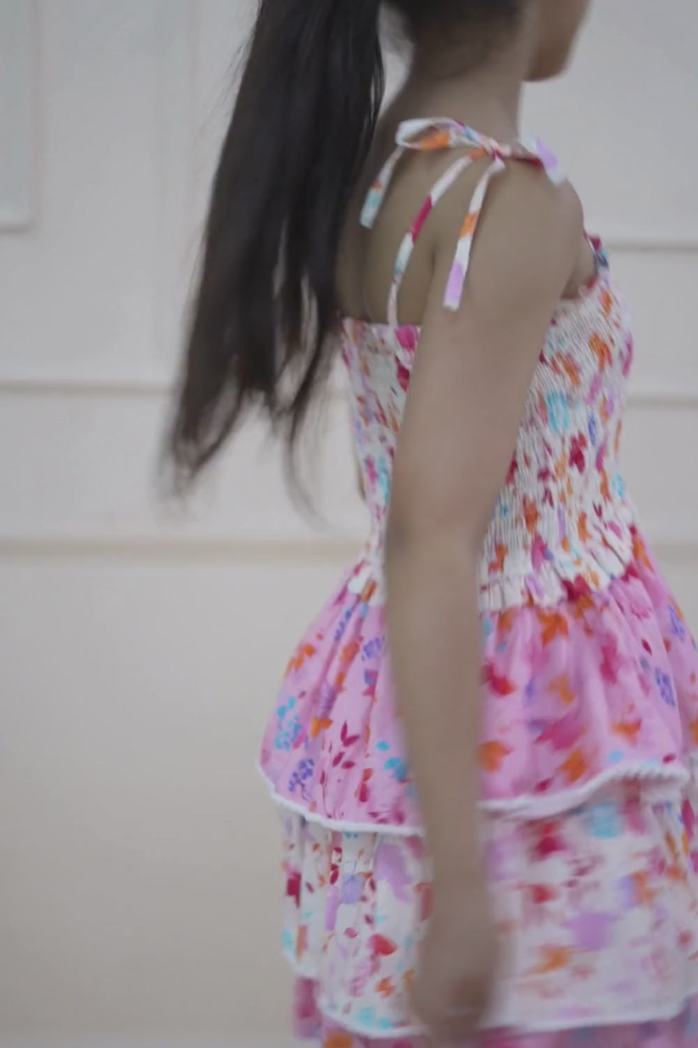 Our Jolly print panel dress is like a sweet candy made with the cutest colors and prints. The dress features a snug fit and flare silhouette. The dress has contrasting pink and white floral panels like a cute candy. The elasticated top gives a comfortable fitting and the flared bottom is perfect for twirling in summers. The shoulder straps are adjustable.