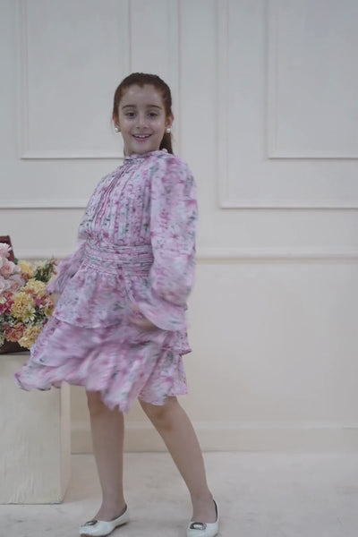 Make a summer statement in our Sweet Violet Girls Flared Dress. The beautiful floral print, flare of the skirt and pleated waist give the perfect fit and flared silhouette. Asymmetric flares, puff sleeves and beautiful details is all a princess needs. The fabric is light on skin and super breathable.